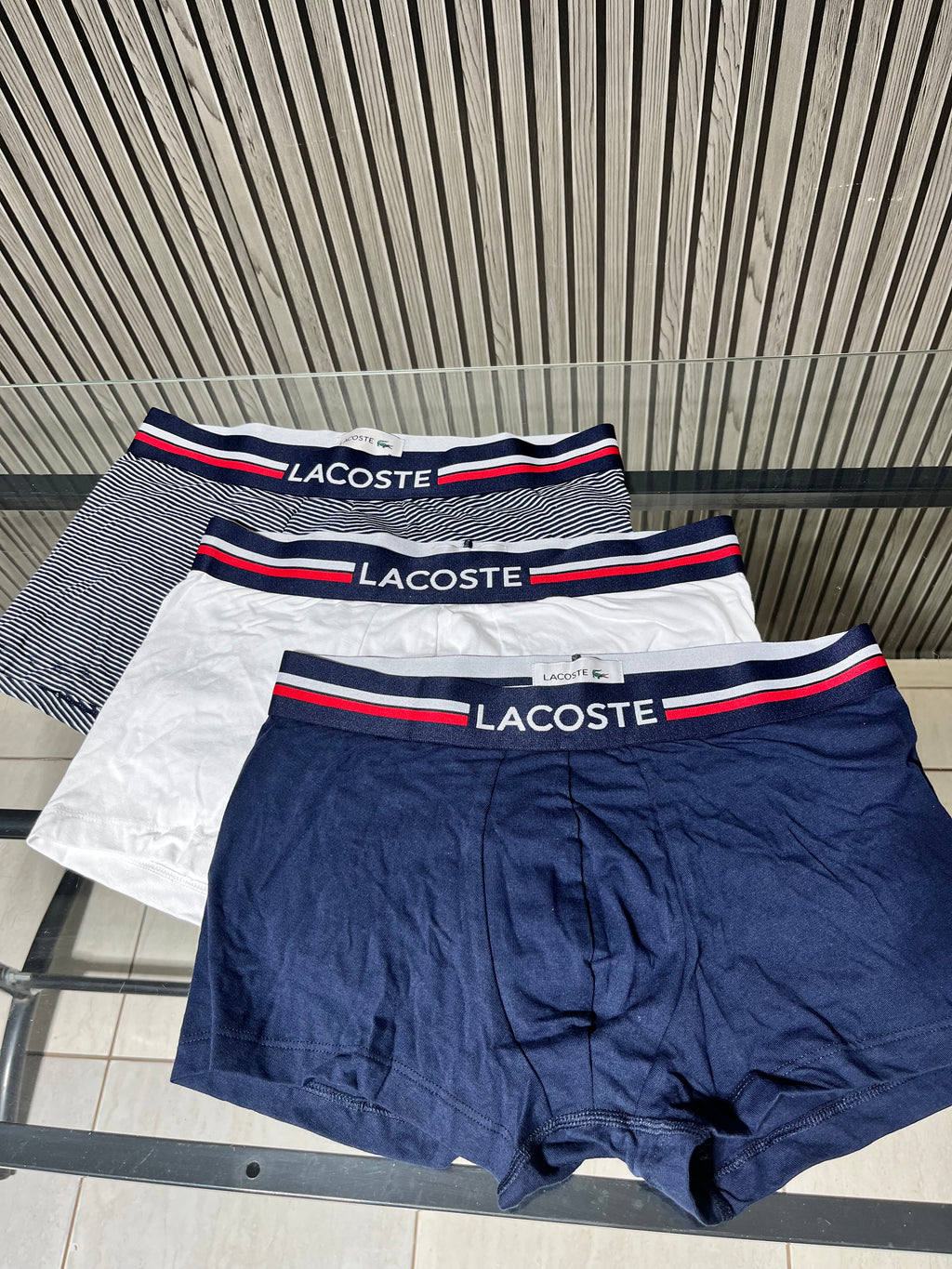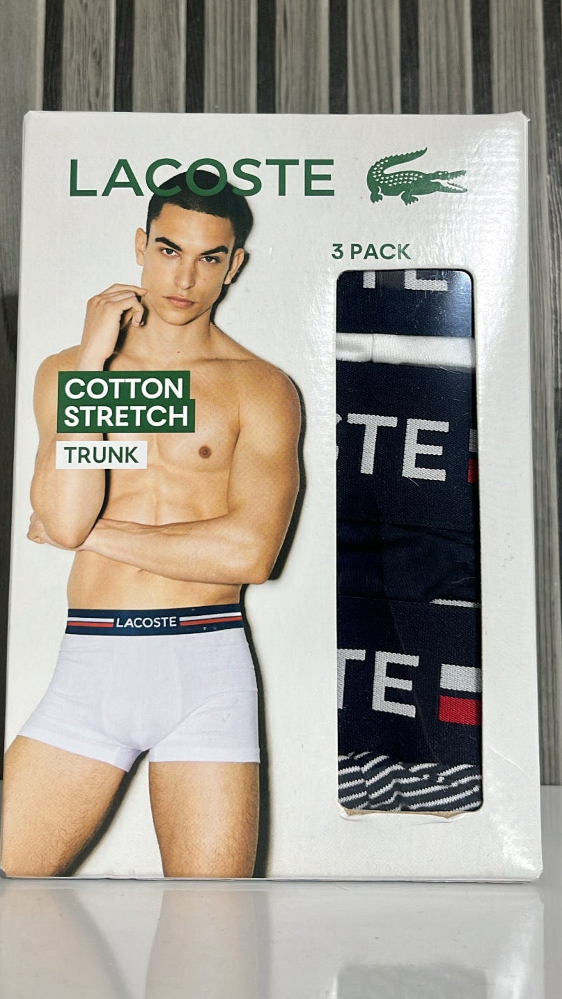 PACK COM TRÊS CUECAS LACOSTE TRUNK EM ALGODÃO COM ELASTANO E LOGO NO CÓS